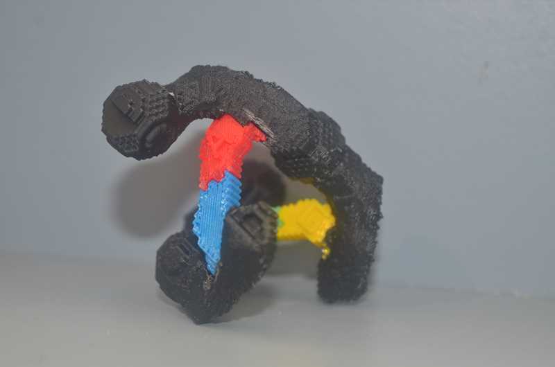 This is a 3D DNA model designed to assist in the education of DNA structure and the base pairing rule. It consists of a total of 8 bases, and 8 sugar-phosphate backbone pieces. The nitrogenous bases are colour coded and also have the first letter of the name of the base printed on it. The bases will only complementary pair with the appropriate base, and also only in a particular orientation. So the only way to get the model together is in the correct fashion. The bases also fit snugly into the binding site on the backbone and the backbone pieces also fit snugly together. This model is not snap together, it requires glue to get it to stay together. Acetone or superglue will be sufficient.